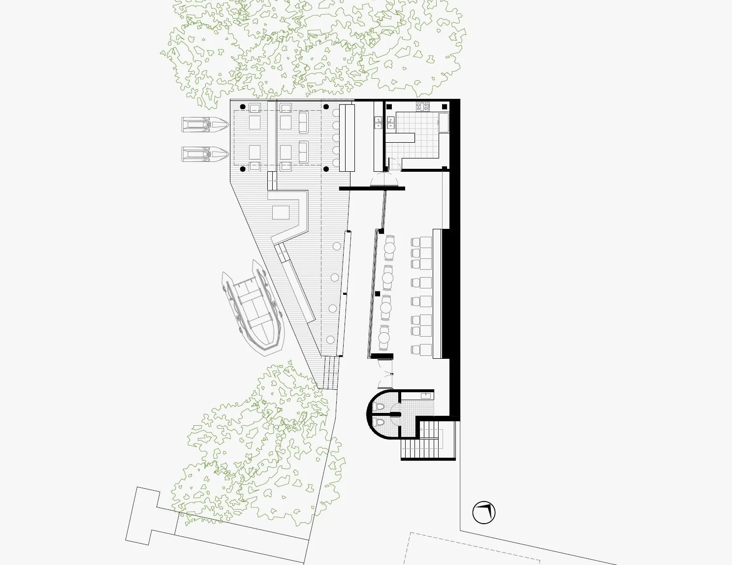 La mejoría mas significativa es la inclusión de un nuevo muelle multifuncional. Este muelle consta de un embarcadero de pequeñas embarcacions, además de un área lounge en dos niveles, y un bar. El área lounge pergolada permite disfrutar de la cercanía del agua mientras se hace aperitivo, mientras que, al fondo de la parcela - en un entorno más protegido y climatizado- se encuentra el nuevo restaurante/café de la posada.